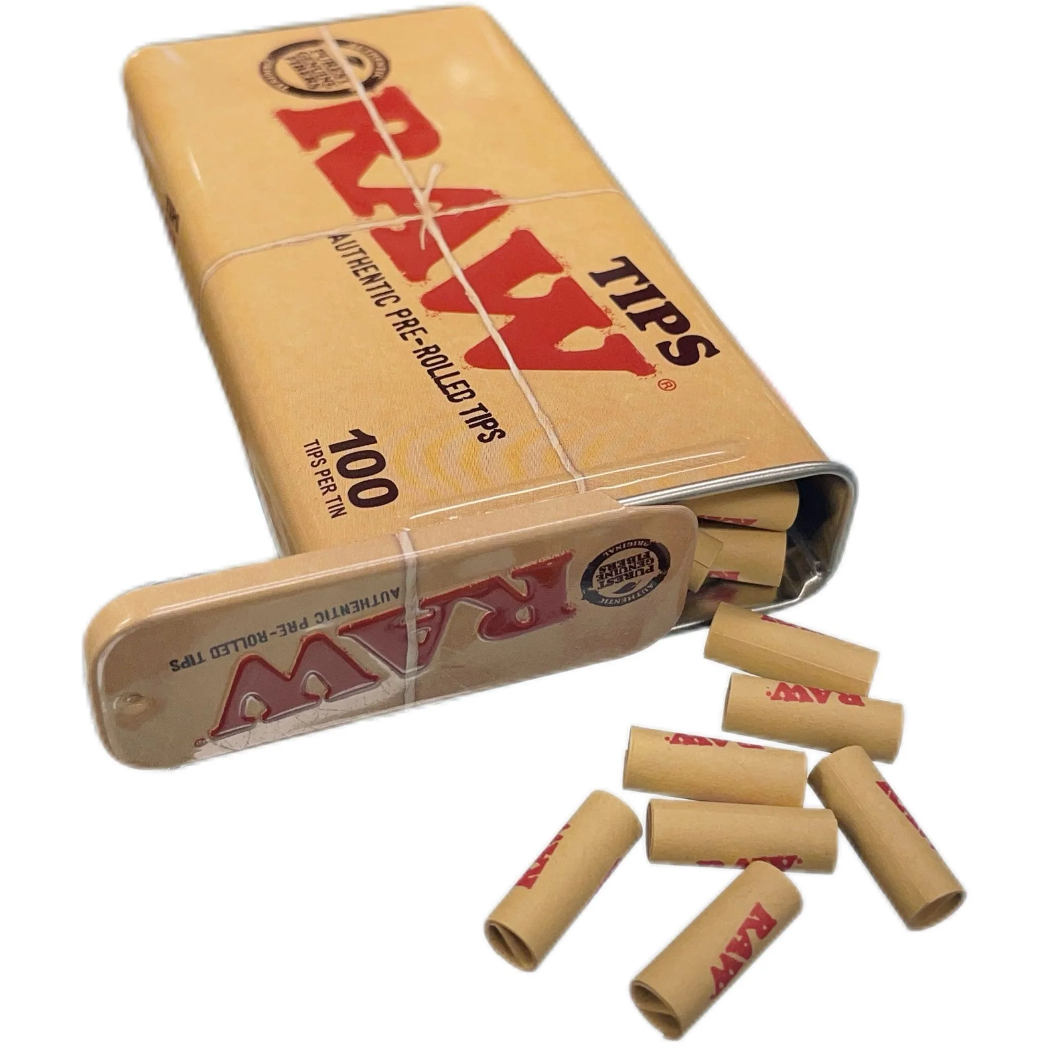 Includes 100 pre-rolled tips per reusable RAW rolled tin