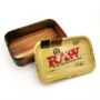 Lift the tray to reveal a spacious interior lined with rich wood grain, ideal for storing papers, filters, lighters, and other smoking accessories. Compatible with any standard 11″ x 7″ RAW metal tray, this cache box combines function, quality, and style – the ultimate setup for any RAW enthusiast.